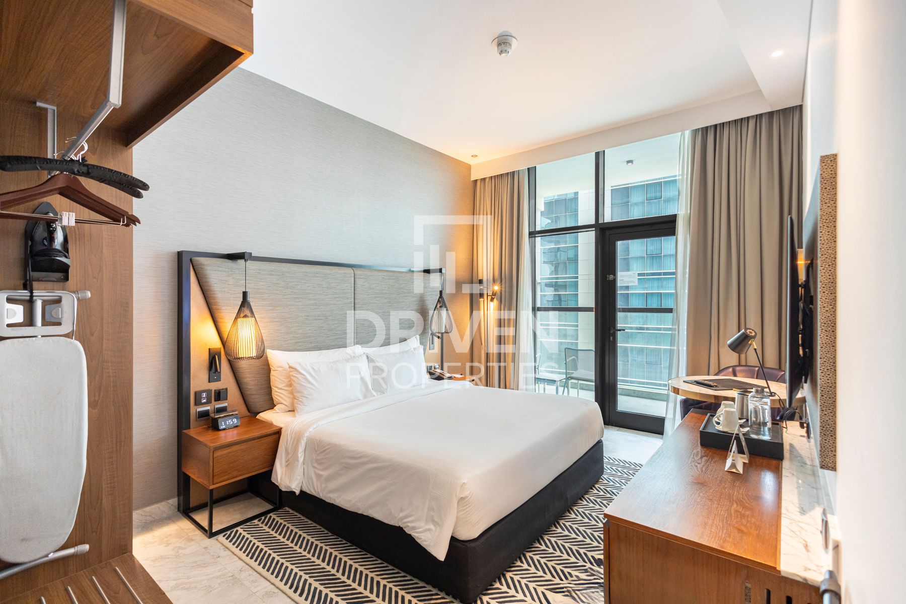This modern studio is thoughtfully designed to maximize space and comfort, featuring elegant interiors, high quality furniture, and floor to ceiling windows that fill the home with natural light. The open-plan layout combines living, dining, and sleeping areas seamlessly, creating a cozy yet sophisticated atmosphere.